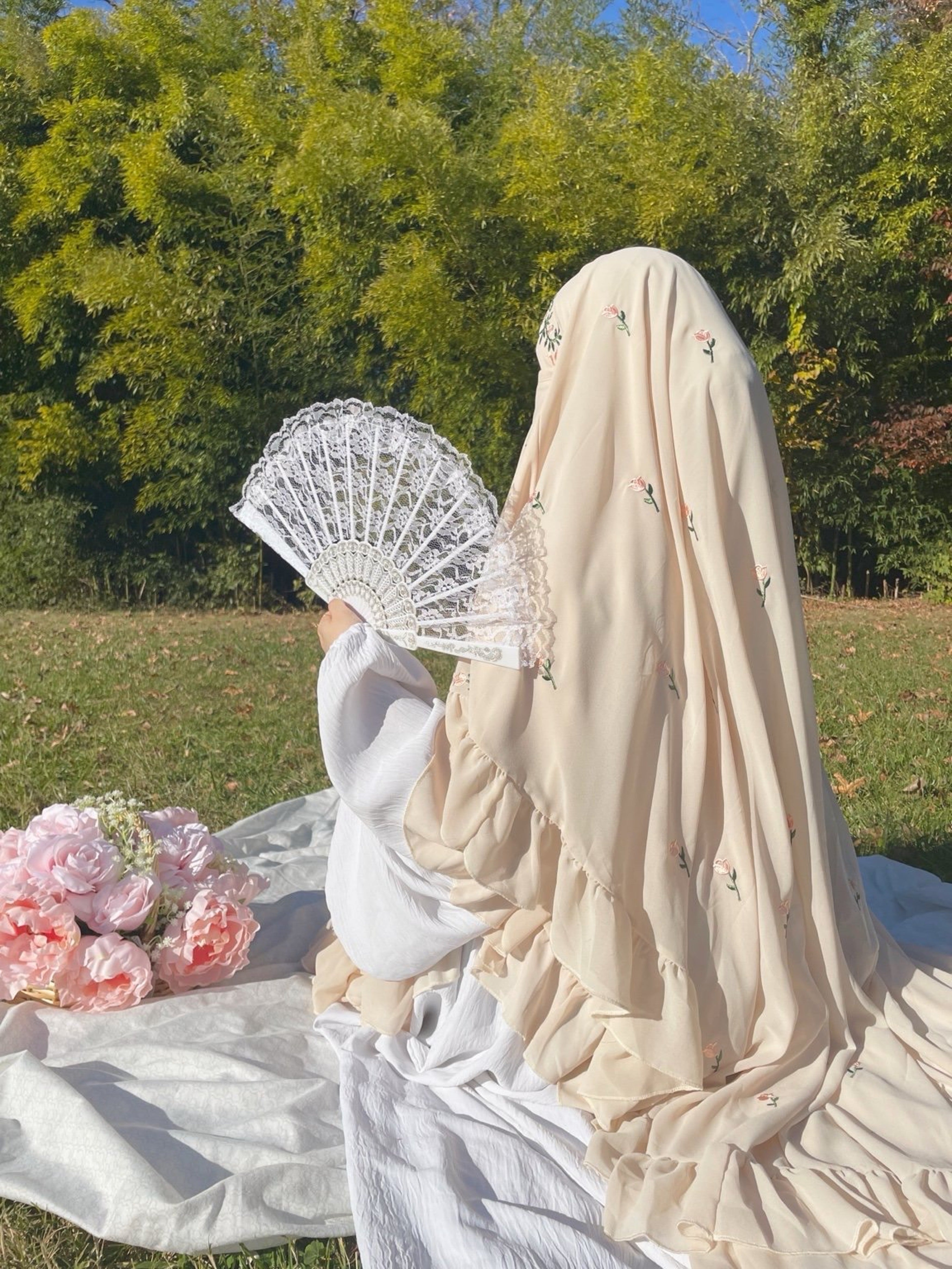 ♡ Each khimar is carefully inspected before shipping to ensure it is free from defects. Due to the delicate handmade nature of the Rosette Collection, all sales are final. Please note that we do not offer refunds or exchanges, as every piece is thoroughly checked for quality prior to dispatch.