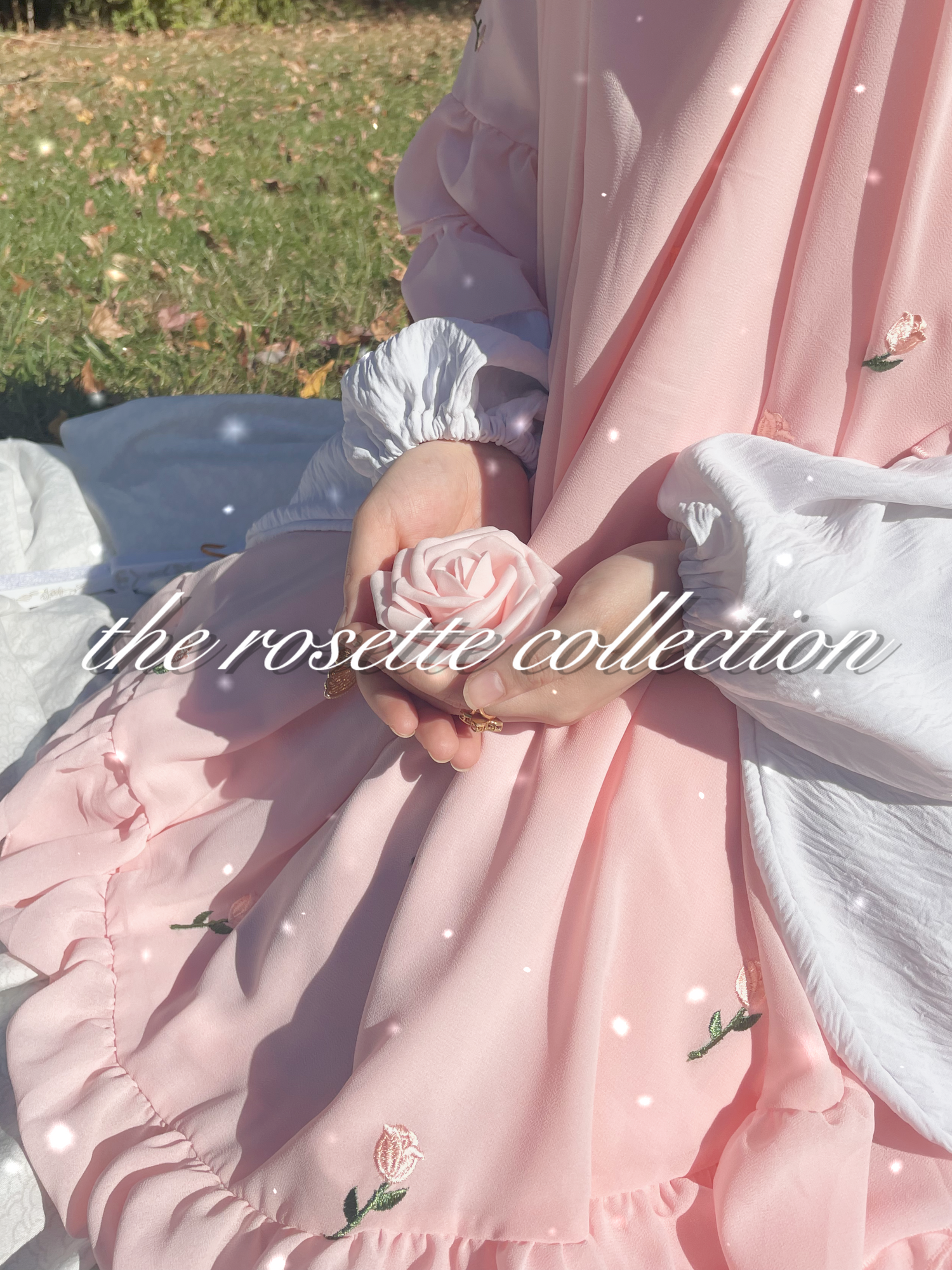 The Rosette Collection features flowy khimars with delicate rose embroidery, soft ruffles, and charming bows — a graceful blend of elegance and timeless modesty.