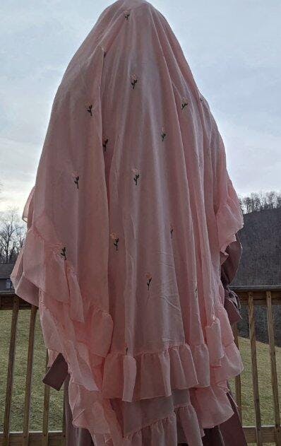 ♡ Because each khimar is individually crafted, the placement of rose embroidery may slightly vary from piece to piece. This variation is a natural part of the handmade process and does not affect the overall design or quality of the khimar.